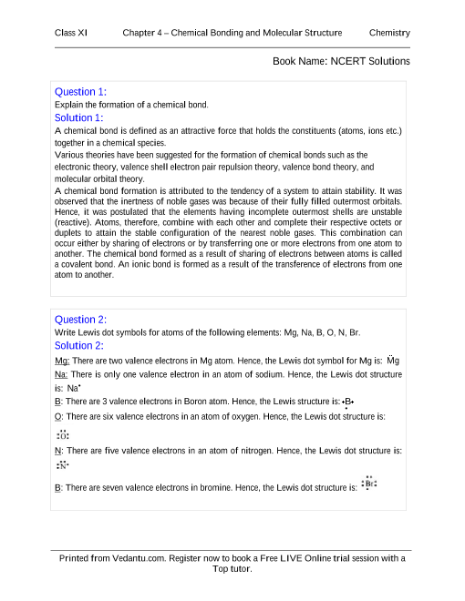 FAQs on Ncert Books Class 11 Chemistry Chapter 4 Free Download