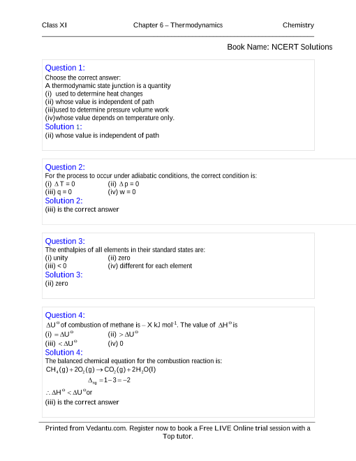 FAQs on Ncert Books Class 11 Chemistry Chapter 6 Free Download
