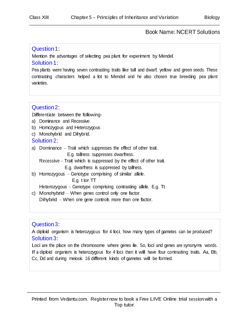 FAQs on Ncert Books Class 12 Biology Chapter 5 Free Download