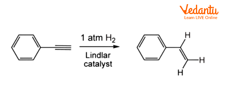$RC \equiv CR' + {H_2}\xrightarrow{{}}cis - RCH \equiv CR'H$