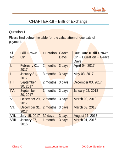 Class 11 DK Goel Solutions Chapter 18 - Bills of Exchange