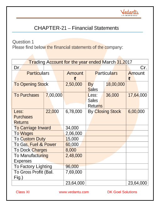 Class 11 DK Goel Solutions Chapter 21 - Financial Statements