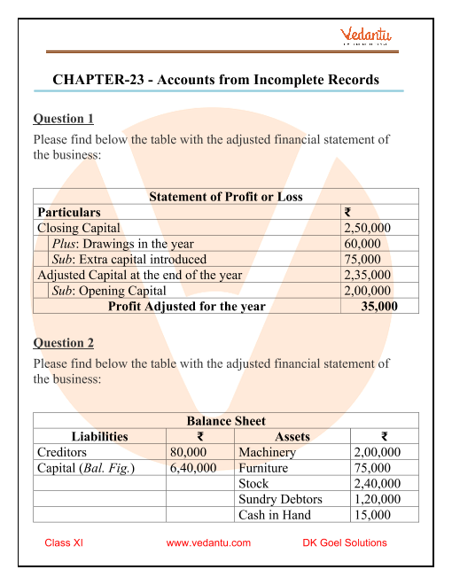 Class 11 DK Goel Solutions Chapter 23 - Accounts from Incomplete Records