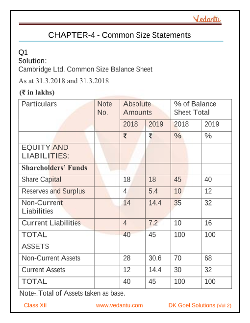 Class 12 DK Goel Solutions Volume 2 Chapter 4 - Common Size Statements