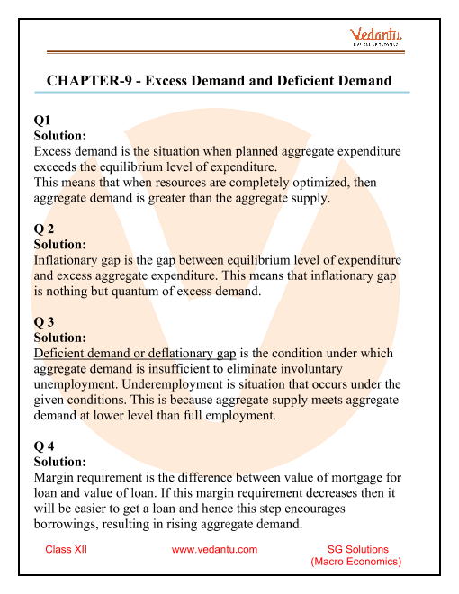 Download Important Class 12 Macroeconomics Sandeep Garg Solutions Chapter 9 - Excess Demand and Deficient Demand Free PDF