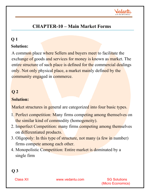 Class 12 Microeconomics Sandeep Garg Solutions Chapter 10 – Main Market Forms