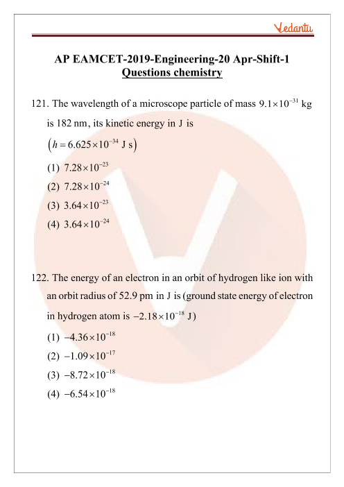 20th April 2019 Morning Shift-AP EAMCET 2019 Chemistry Previous Year Question Papers with Solutions
