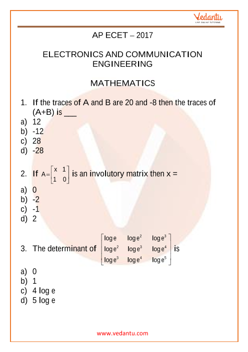 AP ECET Maths Question Paper 2017