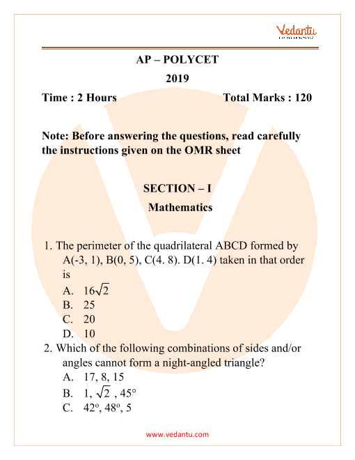 AP POLYCET 2019 Maths Question Paper PDF Download