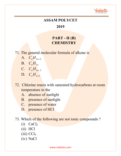 For more information, refer to https://www.vedantu.com/exams/assam-polycet-chemistry-question-paper-2019