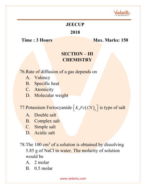 For more information, refer to https://www.vedantu.com/exams/jeecup-chemistry-question-paper-2018