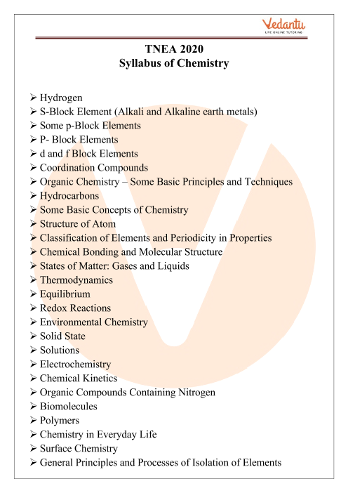 TNEA Chemistry Syllabus 2023-24 PDF Download