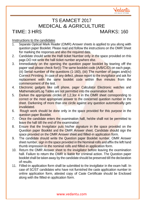 TS EAMCET 2017 Medical and Agriculture Question Paper PDF Download