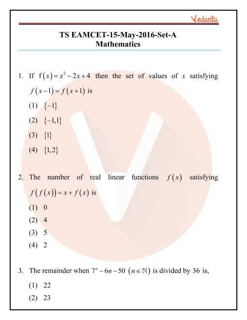 TS EAMCET 2019 Maths Previous Year Question Papers with Solutions - 06 May 2019 Morning Shift