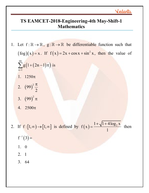 FAQs on TS EAMCET 2018 Previous Year Question Papers with Solutions - 04 May 2018 Morning Shift