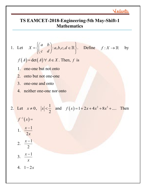 TS EAMCET 2019 Maths Previous Year Question Papers with Solutions - 06 May 2019 Morning Shift