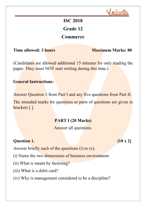 FAQs on ISC Class 12 Commerce Question Paper 2018