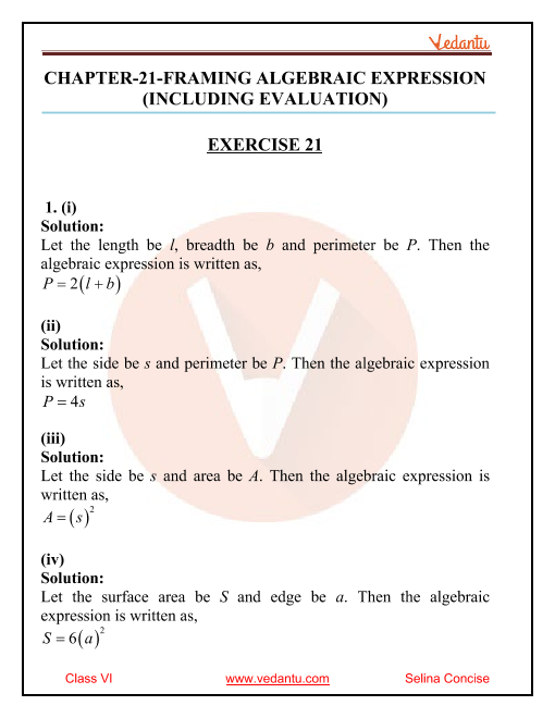 Selina Concise Mathematics Class 6 ICSE Solutions for Chapter 21 - Framing Algebraic Expressions (Including Evaluation)