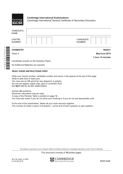 FAQs on Cambridge IGCSE Chemistry-0620 Past Question Paper-2 (June 2015)