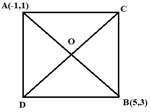 Complete step by step solution: We have been given that \[A\left( { - 1,{\rm{ }}1} \right)\] and \[B\left( {5,{\rm{ }}3} \right)\] are the opposite vertices of the square \[ACBD\] as seen in the below diagram