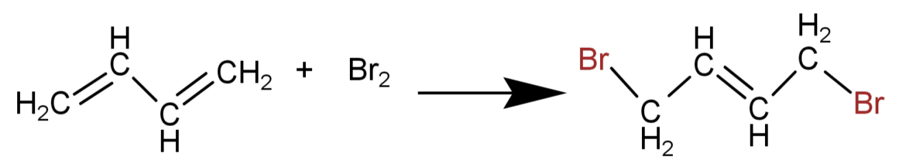 -Also when any halogen attacks on a double bond, there is addition of that halogen on that double bond and a 1,2-addition product might be formed. But this occurs only if there is no conjugation in that double bond.