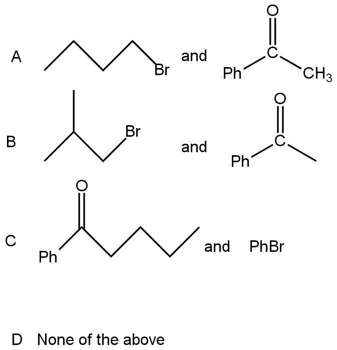 Hence we got 2-phenyl-2-hexanol from compounds of A. Thus, the correct option is A.