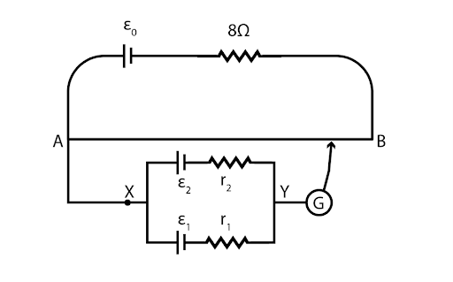 Hint:The problem is from the current electricity section of physics. We need to know the concepts of the potentiometer to solve this problem. Find the resistance and potential across AB. Then we have to find the potential gradient of AB. After that we have to find net emf from the emf’s ${\varepsilon _1}$ and ${\varepsilon _2}$. Once we find the net emf we can find the length.