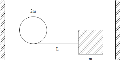 A bead can slide on a smooth straight wire and a particle of mass $\mathrm{m}$ is attached to the bead by light string of length L. The particle is held in contact with the wire with the string taut and then let fall. The bead has mass $2 \mathrm{m}$. When the string makes an angle $\theta$ with the wire find the distance moved by the bead.