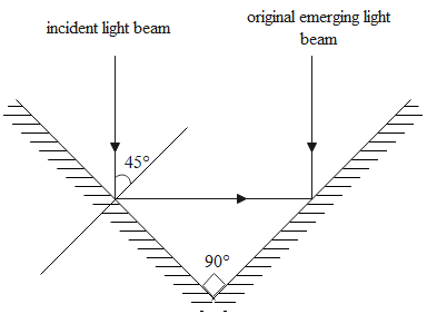 So, we can say that an emerging light beam will move through an angle of ${{45}^{{}^\circ }}$with respect to the original beam.