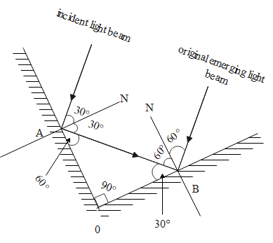 The ray of light strikes the mirror at an angle of, it means it will make an angle of and also from the laws of reflection from the mirror, we know that the angle of reflection is always equal to the angle of incidence.
