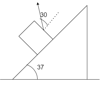 A block of mass $m = 4kg$ is placed over a rough inclined plane as shown in Fig. The coefficient of friction between the block and the plane is $\mu = 0.5$. A force $F = 10N$ is applied on the block at an angle of ${30^ \circ }$. Find the contact force between the block and the plane.