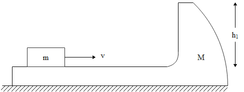 A block of mass m is given a velocity v. Find to what height the block will rise after breaking off from mass M. Assume all surfaces to be smooth: