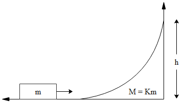 A block of mass m is moved towards a movable wedge of mass M = Km and height h with velocity u (All the surface is smooth). If the block just reaches the top of the wedge, the value u is: