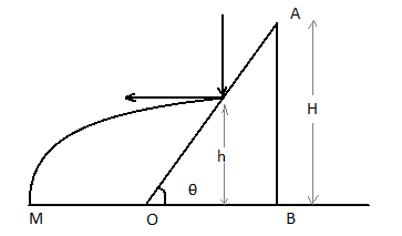 From above diagram the body which falls from height $H$ from the point $B$ from $h$ height above the ground. The path of the body after striking it will be like a parabola.