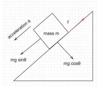 $\Rightarrow {{a = }}\dfrac{{{F}}_{net}}{m} = \dfrac{{{{mg sin}}\theta }}{{{m}}} = g\sin \theta $
