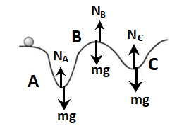 $ {{\text{N}}_{\text{A}}}{\text{ - mg = }}\dfrac{{{\text{m}}{{\text{v}}^{\text{2}}}}}{{{{\text{R}}_{\text{A}}}}} \\