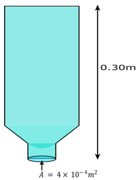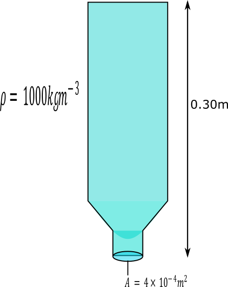 A bottle is filled with water. A cap is put on the bottle and it is turned upside down there is no air inside the bottle. The area of the cap in contact with water is $4.0 \times {10^{ - 4}}{m^2}$. The density of water is $1000kg{m^{ - 3}}$ and the gravitational field strength is $10Nk{g^{ - 1}}$. The water produces a force on the cap. What is the value of this force?