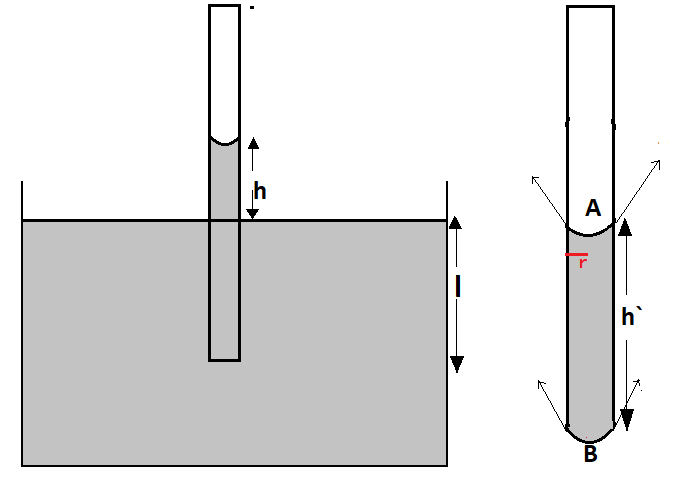 $\left( h \right)$due to immersion of capillary into the water and $\left( {h`} \right)$ after removing it from water