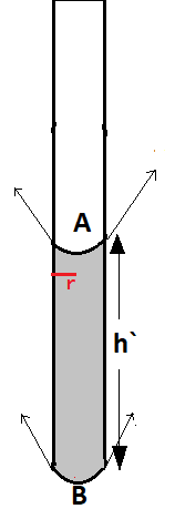 $h = \dfrac{{2T\operatorname{Cos} \theta }}{{r\rho g}}$ $h` = \dfrac{{4T\cos \theta }}{{r\rho g}}$