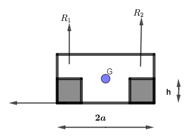 Let us draw the free body diagram of wheels of the car where height of the wheel is h and distance between two wheels is $2a$ and G is the point of centre of gravity of the car as shown in the diagram
