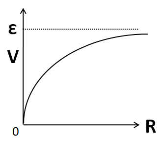 So the ordinate of the plot will approach the value $\varepsilon $ as the variable resistance $R$ is infinitely increased.