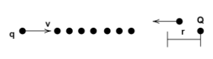 $\dfrac{{kQq}}{r} = \dfrac{{m{v^2}}}{2}$