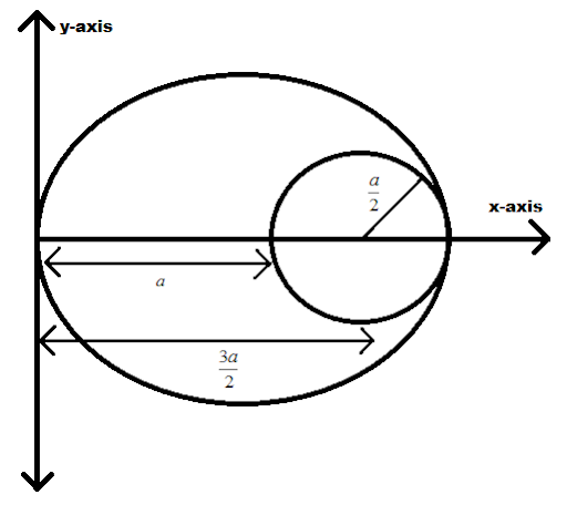 Here, as we see that the radius of the inner circle is $\left( {\dfrac{a}{2}} \right)$ and the outer circle radius is “a”, therefore it will be;