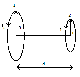 ${\rm M} = \dfrac{{{\Phi _2}}}{{{I_1}}} = \dfrac{{{\mu _0}{I_1}{R^2}\pi {r^2}}}{{2{{\left( {{d^2} + {R^2}} \right)}^{\dfrac{3}{2}}}}}$