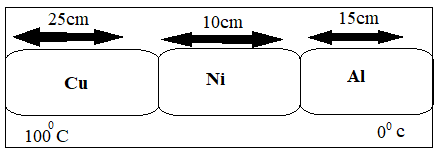 There is a composite metallic bar made up of copper, aluminium and nickel. It has a uniform cross section.
