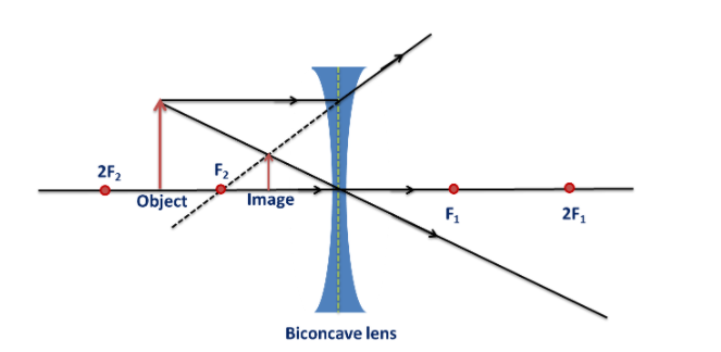 The property of concave lenses that we should be knowing is that it is thinner in the middle. Which means that if there are some 55parallel rays of light passing through any concave lens then the refracted rays will divert so that they appear to come from one single point which is known as the principal focus.