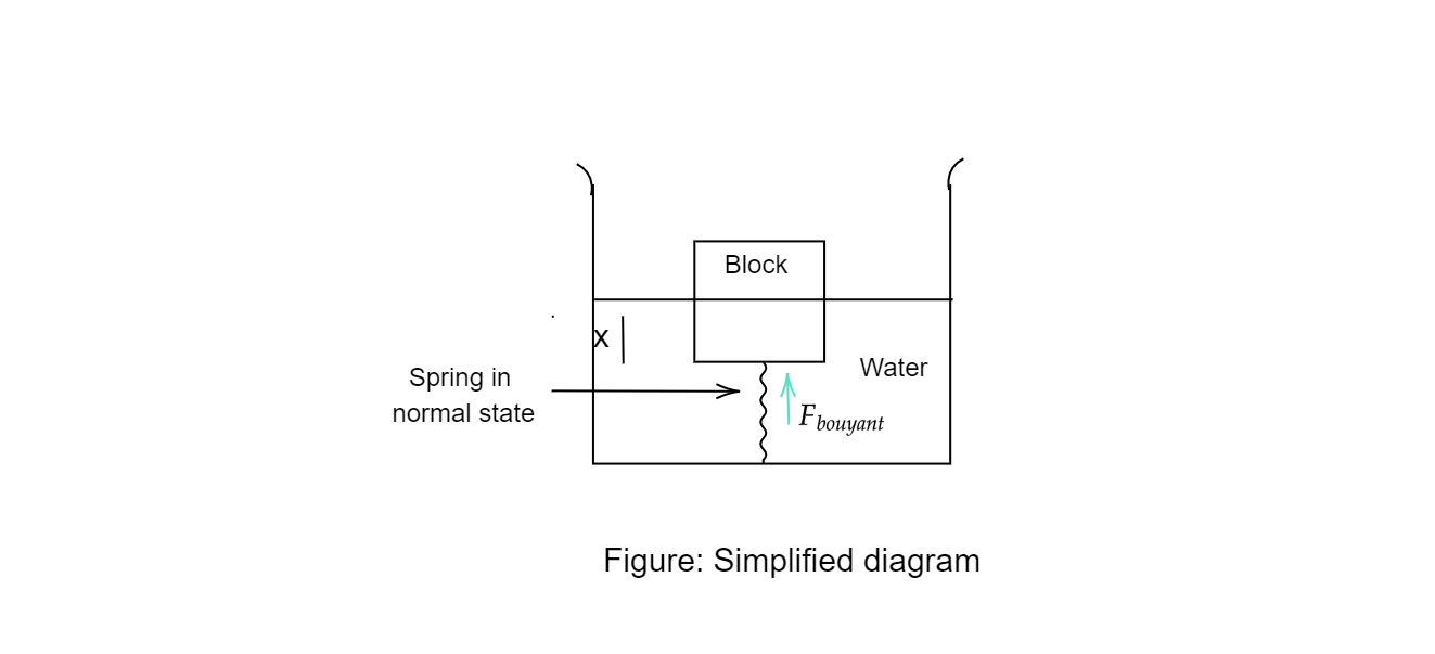 Buoyant force on block, $ \Rightarrow {a^3}{\rho _w}g = 27{(cm)^3} \times \dfrac{1}{{1000}}\left( {\dfrac{{kg}}{{{{(cm)}^3}}}} \right) \times 10\left( {\dfrac{m}{{{s^2}}}} \right) = 0.27N$
