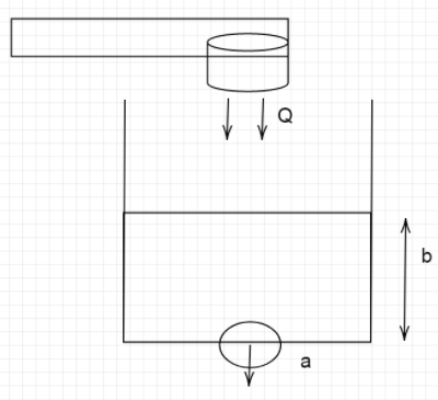 In the question we have a similar scenario where we need to equate the rate at which the water flows through the hole to the rate at which water enters the tank:
