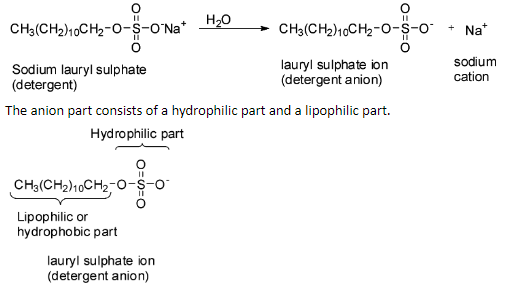 For example, sodium lauryl sulphate is a detergent. It consists of sodium ion and lauryl sulphate anion.