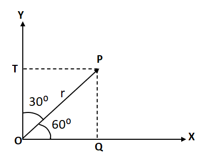 \[\begin{array}{l}\angle POQ = {90^0} - {30^0}{\rm{ }} = {60^0}\end{array}\]